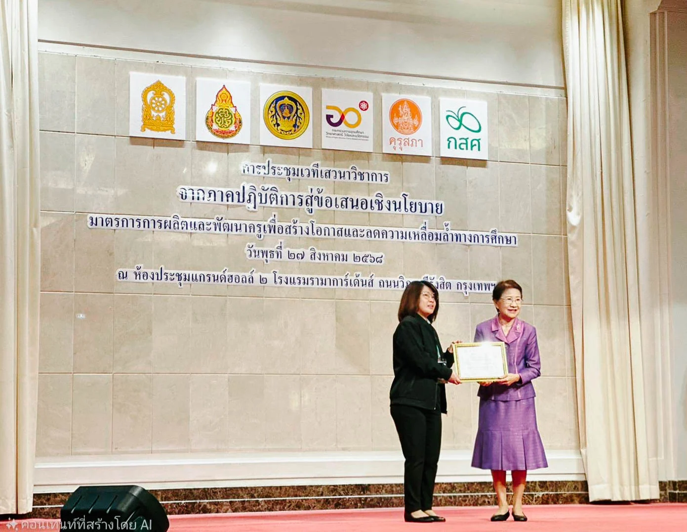 วันที่ 27–28 สิงหาคม 2568 คณะครุศาสตร์ มหาวิทยาลัยราชภัฏเชียงราย นำโดย ผู้ช่วยศาสตราจารย์ ดร.จิราภรณ์ ปาลี รองคณบดีคณะครุศาสตร์ พร้อมด้วย อาจารย์กนกวรรณ วังมณี และ อาจารย์อภิพร เป็งปิง เข้าร่วมเวทีเสวนาวิชาการหัวข้อ “จากภาคปฏิบัติการสู่ข้อเสนอเชิงนโยบาย: มาตรการการผลิตและพัฒนาครู เพื่อสร้างโอกาสและลดความเหลื่อมล้ำทางการศึกษา” ณ โรงแรมรามาการเดนส์ กรุงเทพฯ จัดโดย กองทุนเพื่อความเสมอภาคทางการศึกษา (กสศ.) เพื่อสรุปบทเรียนและระดมข้อเสนอในการขับเคลื่อน โครงการครูรัก(ษ์)ถิ่น ระยะที่ 2 ที่จะเริ่มในปีการศึกษา 2569 โดยได้รับความร่วมมือจาก 7 หน่วยงานเชิงระบบ ได้แก่ กระทรวงศึกษาธิการ (ศธ.), กระทรวงการอุดมศึกษา วิทยาศาสตร์ วิจัยและนวัตกรรม (อว.), สำนักงานคณะกรรมการการศึกษาขั้นพื้นฐาน (สพฐ.), สำนักงานคณะกรรมการข้าราชการครูและบุคลากรทางการศึกษา (ก.ค.ศ.), สำนักงานเลขาธิการคุรุสภา, สำนักงานคณะกรรมการการอาชีวศึกษา (สอศ.) และกรมส่งเสริมการเรียนรู้ (สกร.) ร่วมด้วย 20 สถาบันผลิตครูจากทั่วประเทศ
