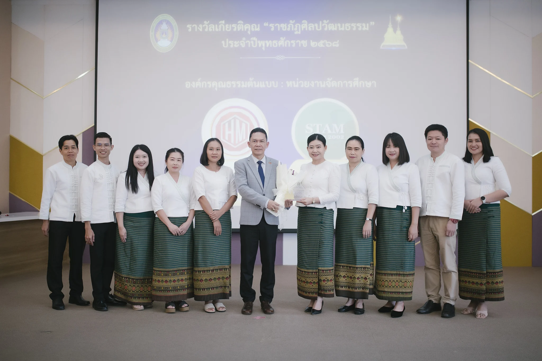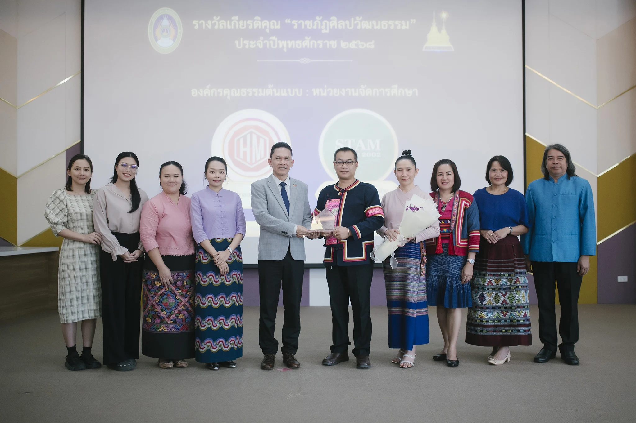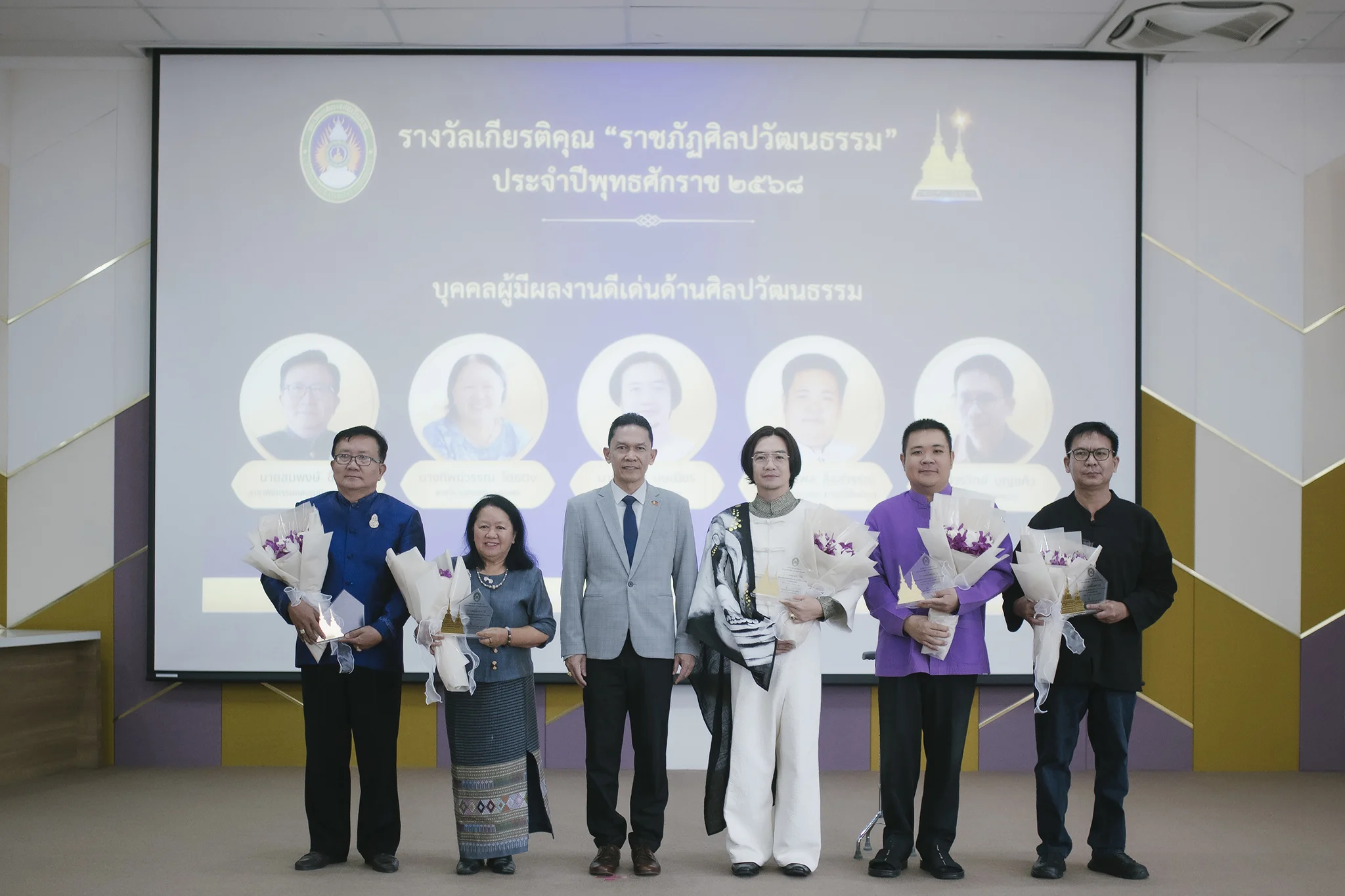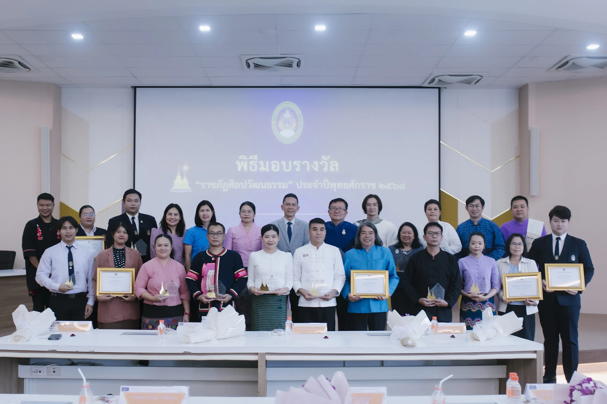 วันที่ 9 กันยายน 2568 สำนักศิลปะและวัฒนธรรม มหาวิทยาลัยราชภัฏเชียงราย จัดพิธีมอบรางวัลเกียรติคุณ “ราชภัฏศิลปวัฒนธรรม” ประจำปี 2568 การมอบรางวัลครั้งนี้มีผู้ได้รับการคัดเลือกจำนวน 15 รางวัล โดยมี รองศาสตราจารย์ ดร.ไพโรจน์ ด้วงนคร รองอธิการบดี มหาวิทยาลัยราชภัฏเชียงราย ให้เกียรติเป็นประธานในพิธี ณ ห้องประชุมศรชัย มุ่งไธสง อาคารสำนักงานอธิการบดี โดยมี ผู้ช่วยศาสตราจารย์ ดร.สุภาพร เตวิยะ ผู้อำนวยการสำนักศิลปะและวัฒนธรรม กล่าวรายงานวัตถุประสงค์การดำเนินงานทั้งนี้เพื่อยกย่องเชิดชูเกียรติบุคคลและองค์กรที่สร้างคุณูปการด้านคุณธรรม จริยธรรม และการอนุรักษ์สืบสานศิลปวัฒนธรรมในระดับท้องถิ่น