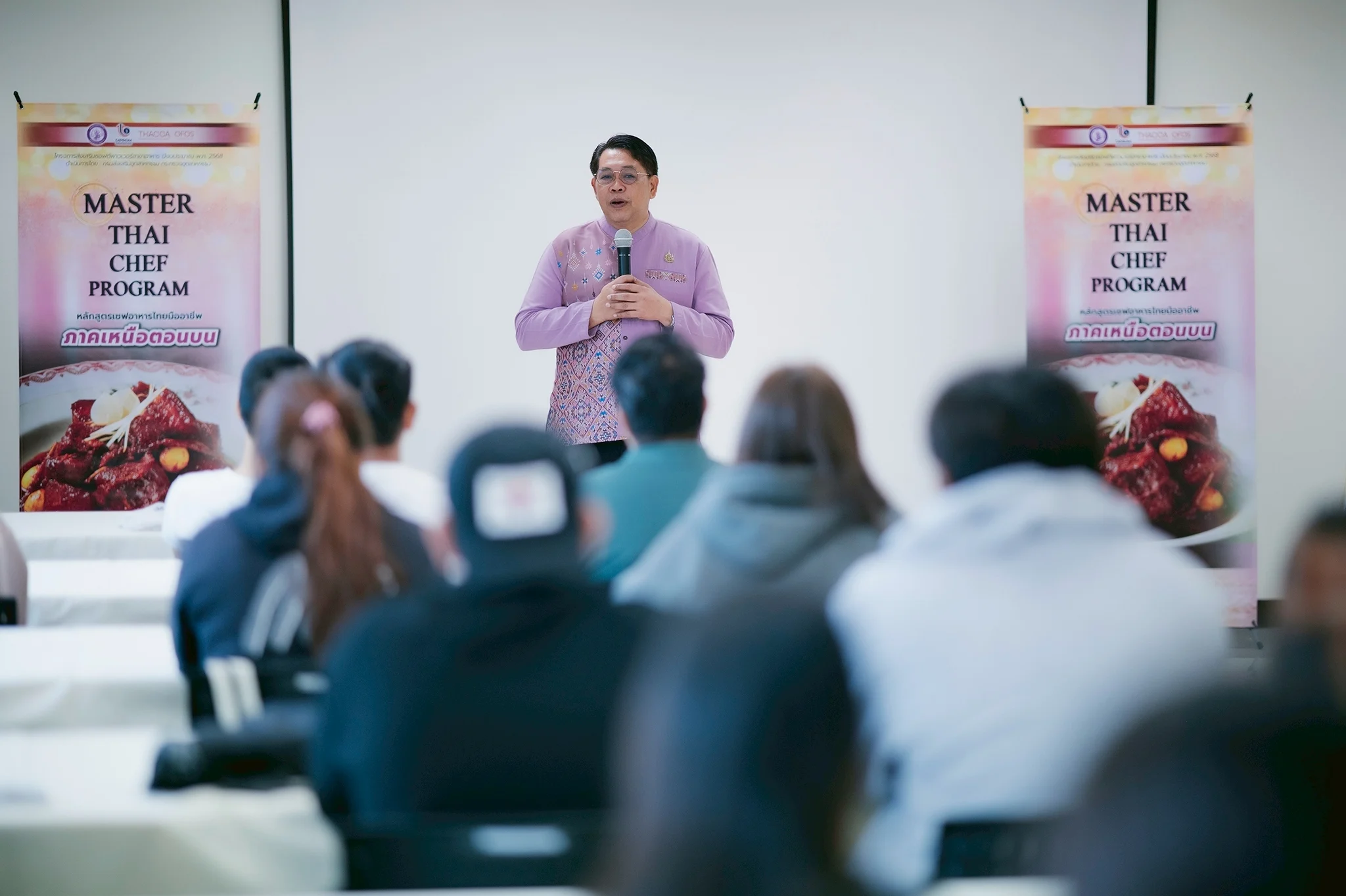 วันที่ 13 กันยายน 2568 สถาบันถ่ายทอดเทคโนโลยีและนวัตกรรม ร่วมกับสาขาคหกรรมศาสตร์ คณะสังคมศาสตร์ มหาวิทยาลัยราชภัฏเชียงราย จัด โครงการฝึกอบรมหลักสูตรเชฟอาหารไทยมืออาชีพ (Master Thai Chef Program) ภายใต้โครงการส่งเสริม Soft Power สาขาอาหาร โดยได้รับเกียรติจาก ผู้ช่วยศาสตราจารย์ ดร.จำรัส กลิ่นหนู รองอธิการบดี เป็นประธานเปิดโครงการ โดย ผู้ช่วยศาสตราจารย์ ดร.มยูร ใยบัวเทศ รองผู้อำนวยการสถาบันถ่ายทอดเทคโนโลยี ได้กล่าวถึงวัตถุประสงค์ การจัดโครงการครั้งนี้มุ่งพัฒนาองค์ความรู้และทักษะด้านอาหารไทยให้แก่บุคลากรและประชาชน เพื่อยกระดับสู่การเป็นเชฟอาหารไทยมืออาชีพ สามารถต่อยอดสู่การสร้างงาน สร้างอาชีพ และขับเคลื่อนอุตสาหกรรมอาหารไทยสู่เวทีโลก ผู้เข้าร่วมโครงการกว่า 60 คน จะได้รับการรับรองมาตรฐานวิชาชีพจากสถาบันคุณวุฒิวิชาชีพ กรมอนามัย กรมพัฒนาฝีมือแรงงาน และหน่วยงานที่เกี่ยวข้อง ซึ่งจะช่วยเพิ่มความน่าเชื่อถือในการประกอบอาชีพด้านอาหารอย่างยั่งยืน