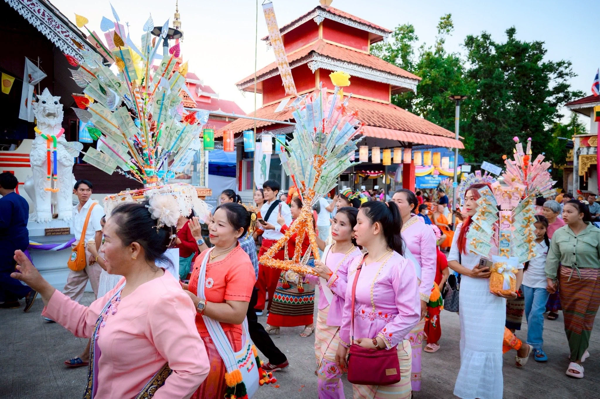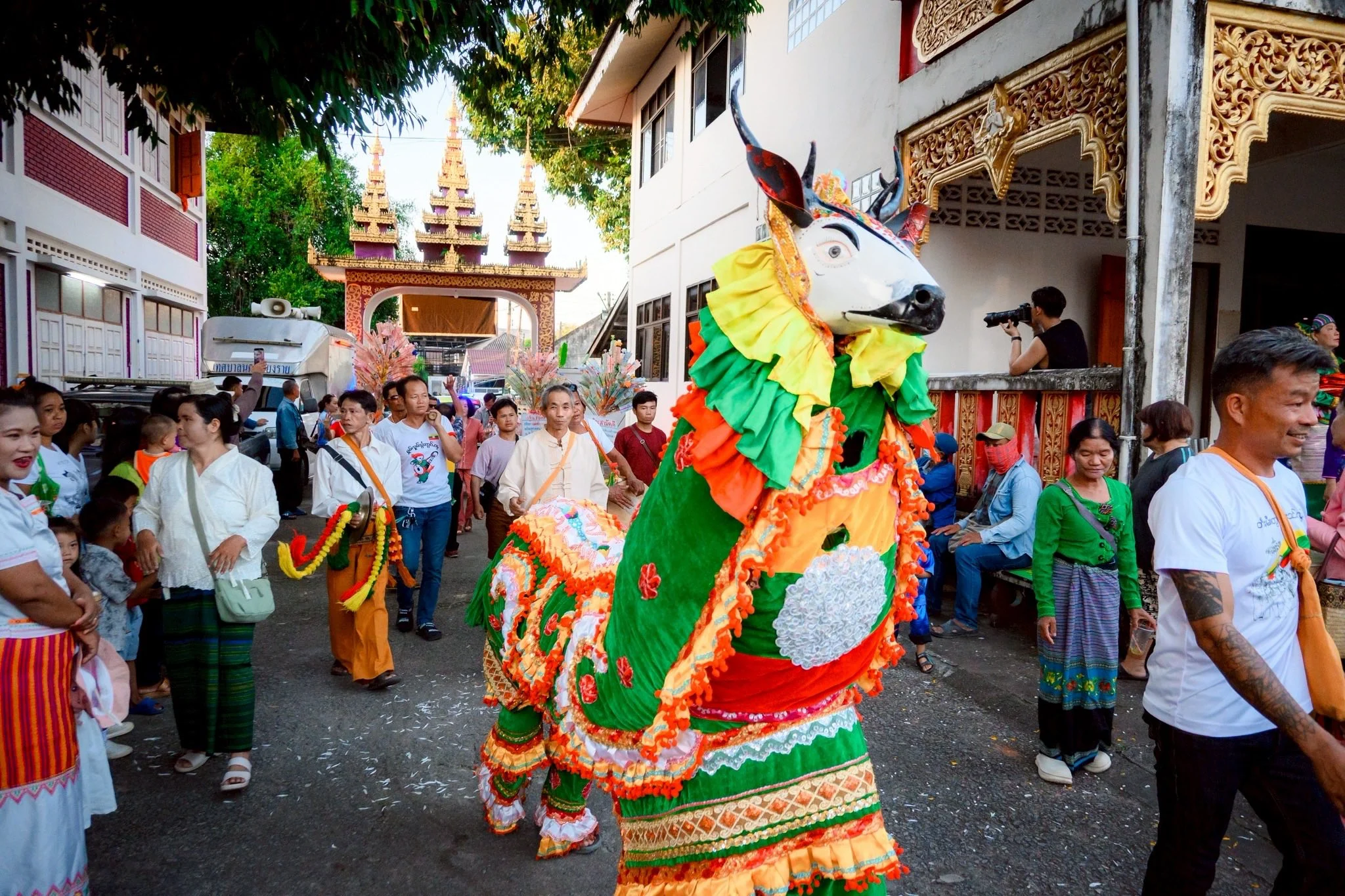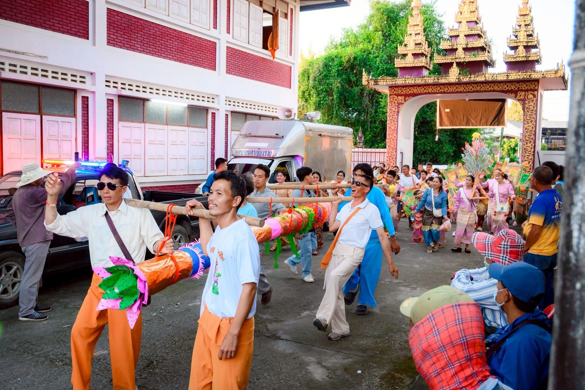 วันที่ 11 ตุลาคม 2568 ผู้ช่วยศาสตราจารย์ ดร.ศศิชา สุขกาย ผู้ช่วยศาสตราจารย์นครินทร์ น้ำใจดี ผู้ช่วยศาสตราจารย์ณัฐทิยา วัฒนศิริศาสตร์ อาจารย์รัชนี ลือดารา และคณะผู้วิจัย สถาบันวิจัยและพัฒนา มหาวิทยาลัยราชภัฏเชียงราย เข้าร่วมกิจกรรมประเพณีออกหว่า (ออกพรรษา) ของชุมชนสันป่าก่อไทใหญ่ ณ วัดสันป่าก่อไทใหญ่ จังหวัดเชียงราย