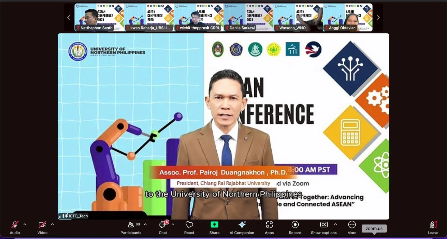 วันที่ 15 ตุลาคม 2568 รองศาสตราจารย์ ดร.ไพโรจน์ ด้วงนคร อธิการบดีมหาวิทยาลัยราชภัฏเชียงราย เข้าร่วมพิธีเฉลิมฉลองครบรอบ 60 ปี มหาวิทยาลัยนอร์เทิร์นฟิลิปปินส์ (University of Northern Philippines: UNP) ณ เมืองวิกัน ประเทศฟิลิปปินส์ พร้อมร่วมปฏิบัติหน้าที่เจ้าภาพในการจัดประชุมวิชาการนานาชาติ ASEAN Conference 2025 ภายใต้หัวข้อ “Innovating Futures Together: Advancing STEM for a Sustainable and Connected ASEAN” เพื่อร่วมขับเคลื่อนความร่วมมือทางวิชาการในภูมิภาคอาเซียน