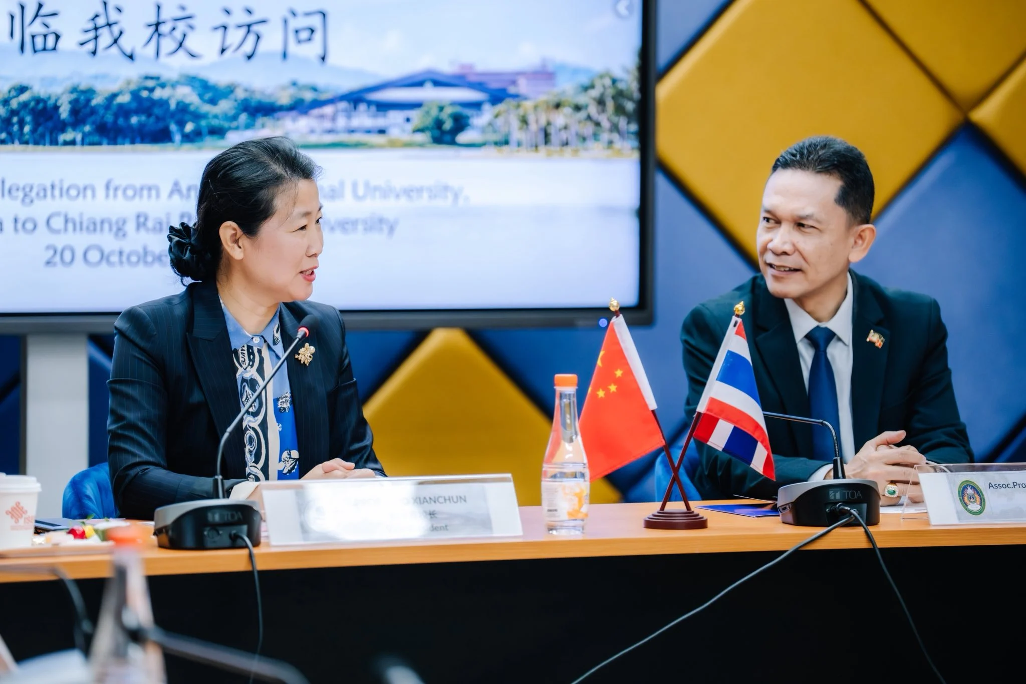 วันที่ 20 ตุลาคม 2568 รองศาสตราจารย์ ดร.ไพโรจน์ ด้วงนคร อธิการบดีมหาวิทยาลัยราชภัฏเชียงราย พร้อมด้วยคณะผู้บริหารและบุคลากรศูนย์การจัดการศึกษานักศึกษาต่างชาติ (ISEM) ให้การต้อนรับ Prof. Guo Xianchun อธิการบดีจาก Anshan Normal University สาธารณรัฐประชาชนจีน พร้อมคณะผู้บริหาร ในโอกาสเดินทางมาเยือนมหาวิทยาลัยราชภัฏเชียงราย เพื่อหารือแนวทางและเจรจาขยายความร่วมมือทางวิชาการระหว่างสองสถาบัน