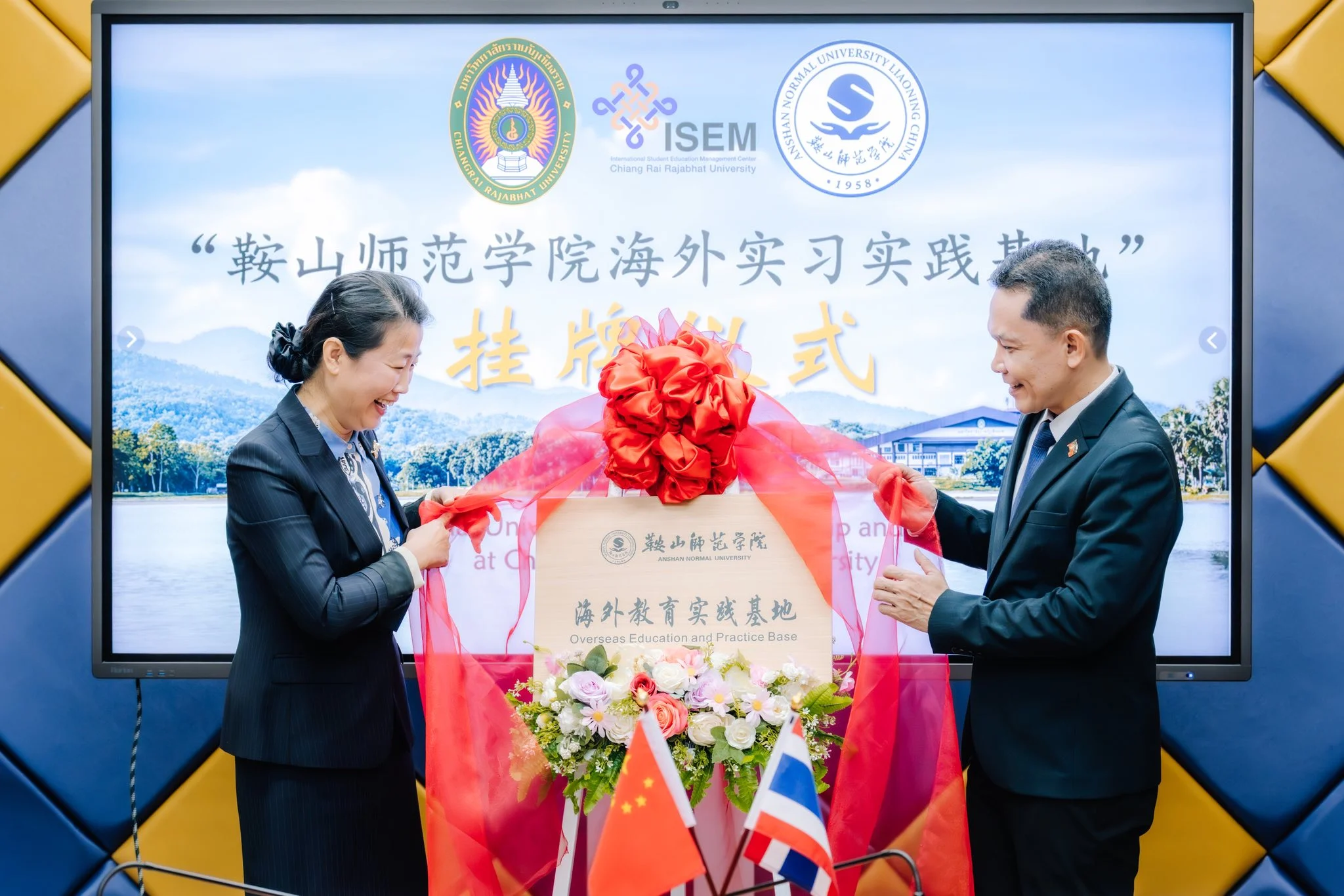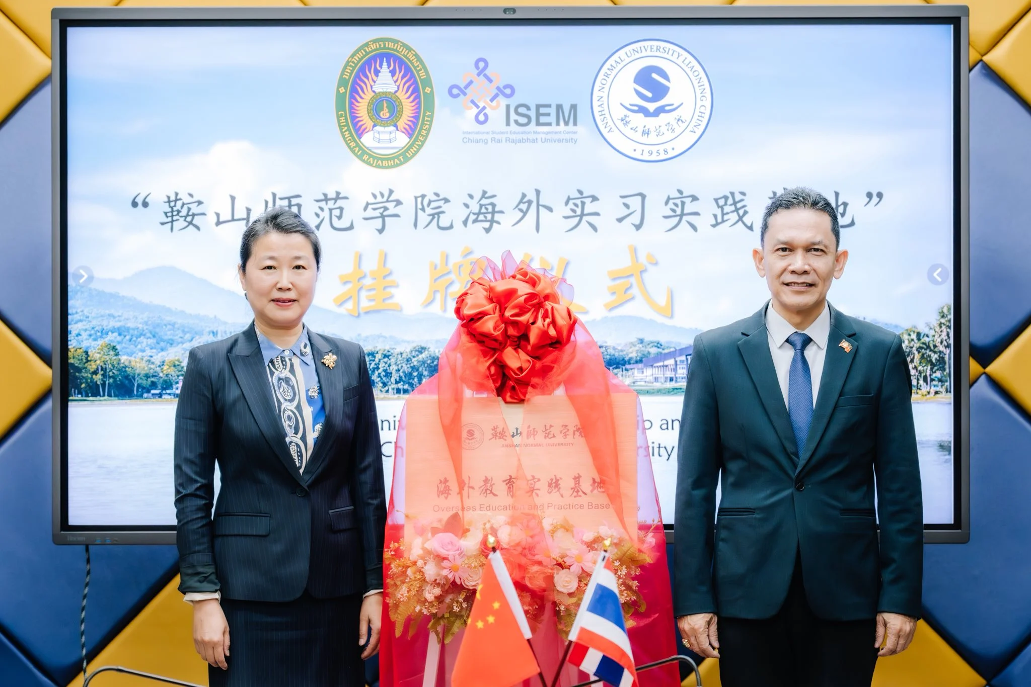 ในโอกาสเดียวกัน ทั้งสองฝ่ายได้ร่วมกันเปิดป้ายศูนย์ฝึกประสบการณ์วิชาชีพต่างประเทศ ภายใต้ชื่อ “Anshan Normal University Overseas Internship and Practice Base” “Anshan Normal University Overseas Internship and Practice Base” ณ มหาวิทยาลัยราชภัฏเชียงราย ซึ่งถือเป็นอีกหนึ่งก้าวสำคัญในการพัฒนาความร่วมมือทางการศึกษา สร้างโอกาสให้นักศึกษาได้แลกเปลี่ยนเรียนรู้ ฝึกประสบการณ์วิชาชีพในระดับนานาชาติ และยกระดับคุณภาพบัณฑิตให้มีศักยภาพสู่เวทีโลกอย่างยั่งยืน