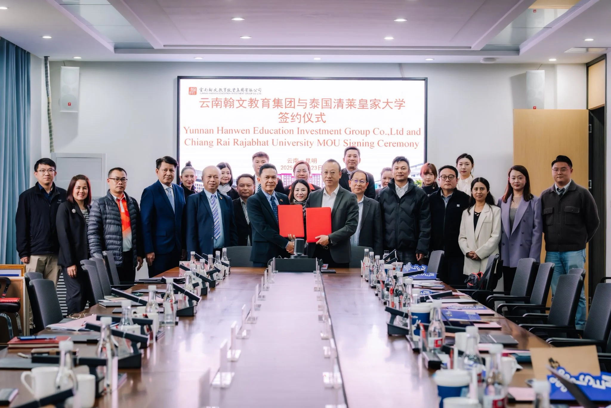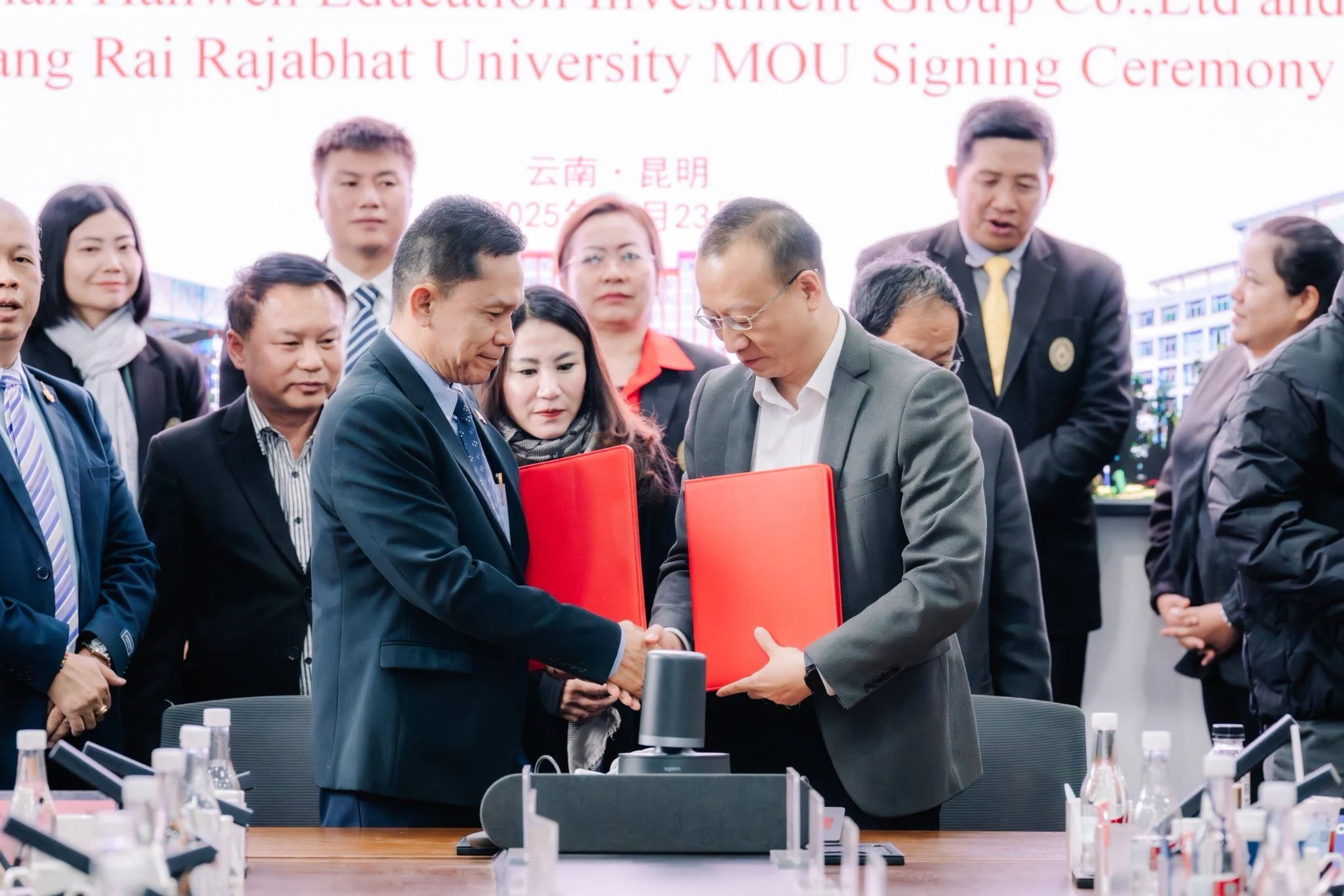 โดยครั้งนี้ มรภ.เชียงราย ได้ร่วมลงนามบันทึกข้อตกลงร่วมกัน (MOU) กับทั้ง 3 วิทยาลัย ในการดูแลของ Yunnan Hanwen Education Group นับเป็นการเปิดพื้นที่ทางการศึกษาแห่งใหม่ในมณฑลยูนนาน