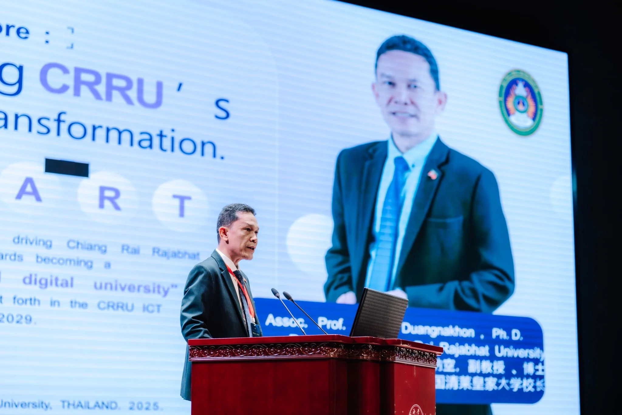 วันที่ 25 ตุลาคม 2568 รศ.ดร.ไพโรจน์ ด้วงนคร อธิการบดี มหาวิทยาลัยราชภัฏเชียงราย พร้อมคณะผู้บริหาร ได้เข้าร่วมการประชุมสัมมนาทางวิชาการ เรื่อง “ความร่วมมือการจัดการศึกษาของประเทศอนุภูมิภาคลุ่มน้ำโขง ครั้งที่ 5 The 5th Lancang – Mekong Education Cooperation (Pu’ er) Forum ณ Pu’er University เมืองผูเอ่อร์ มณฑลยูนนาน สาธารณรัฐประชาชนจีน ในการนี้ รศ.ดร.ไพโรจน์ ด้วงนคร อธิการบดีมหาวิทยาลัยราชภัฏเชียงราย ได้แสดงปาฐกถาพิเศษ หัวข้อ Strategy for Chiang Rai Rajabhat University’s Transition to a Digital University: CRRU’s Digital Transformation.