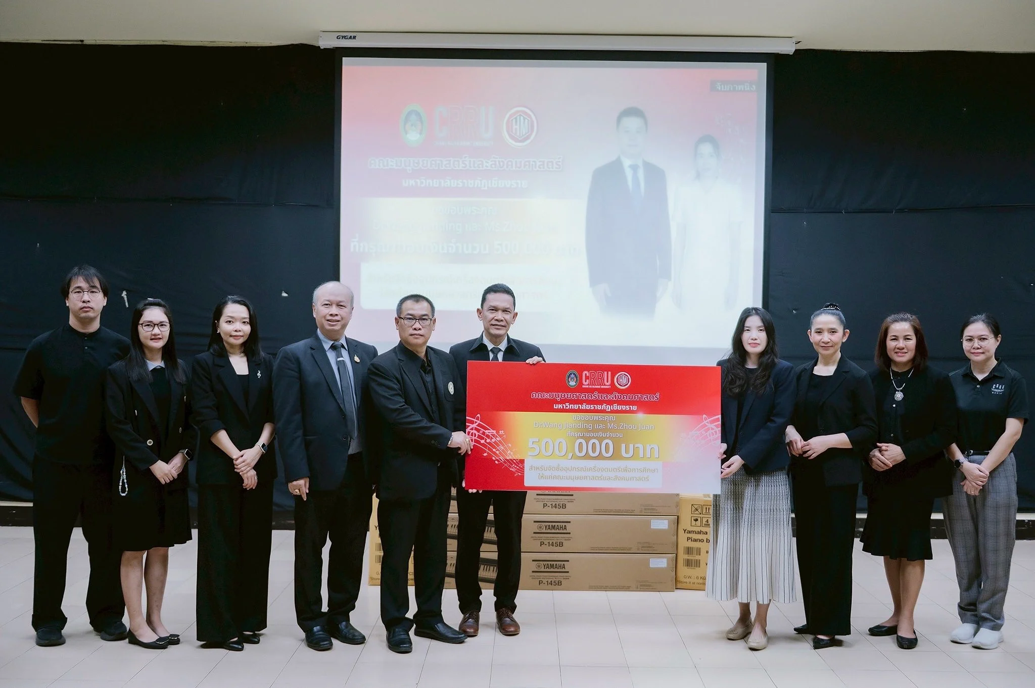 วันที่ 28 ตุลาคม 2568 มหาวิทยาลัยราชภัฏเชียงราย นำโดย รองศาสตราจารย์ ดร.ไพโรจน์ ด้วงนคร อธิการบดี พร้อมด้วย ผู้ช่วยศาสตราจารย์ ดร.สุทัศน์ คล้ายสุวรรณ์ รองอธิการบดี และ ผู้ช่วยศาสตราจารย์ ดร.ปฏิพันธ์ อุทยานุกูล คณบดีคณะมนุษยศาสตร์และสังคมศาสตร์ ให้การต้อนรับ Ms. Zhou Juan ผู้แทนของ Dr. Wang Jianding ศิษย์เก่าผู้สำเร็จการศึกษาจากสาขาวิชาภาษาและวัฒนธรรมไทย ซึ่งได้มอบเงินจำนวน 500,000 บาท เพื่อจัดซื้ออุปกรณ์การเรียนการสอนด้านดนตรี โดยเฉพาะ เปียโนไฟฟ้าจำนวน 20 เครื่อง สำหรับนักศึกษาวิชาเอกดุริยางคศิลป์ คณะมนุษยศาสตร์และสังคมศาสตร์