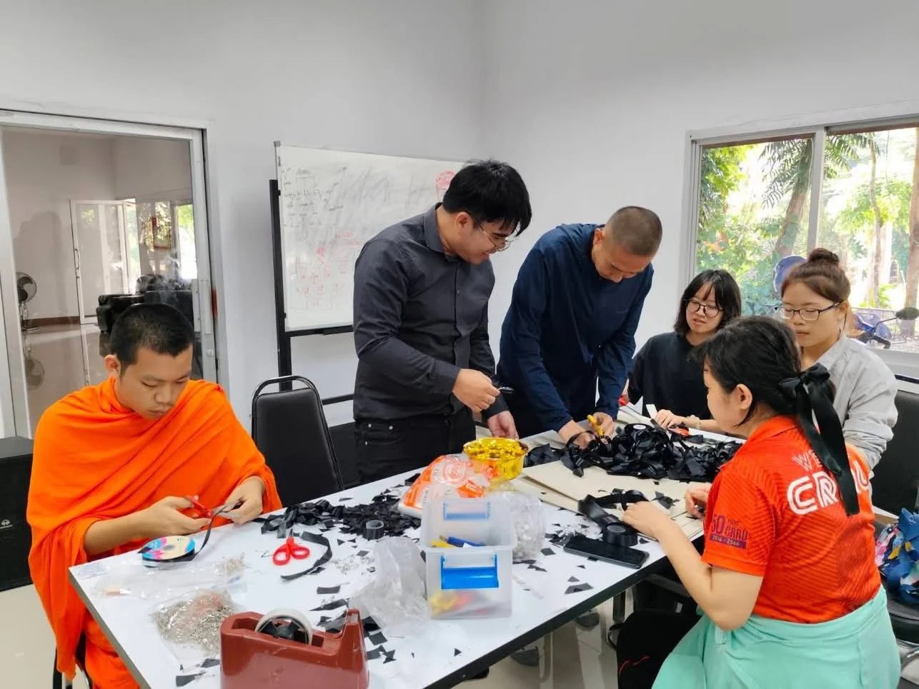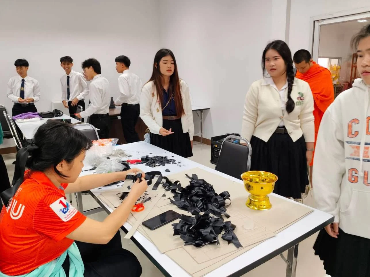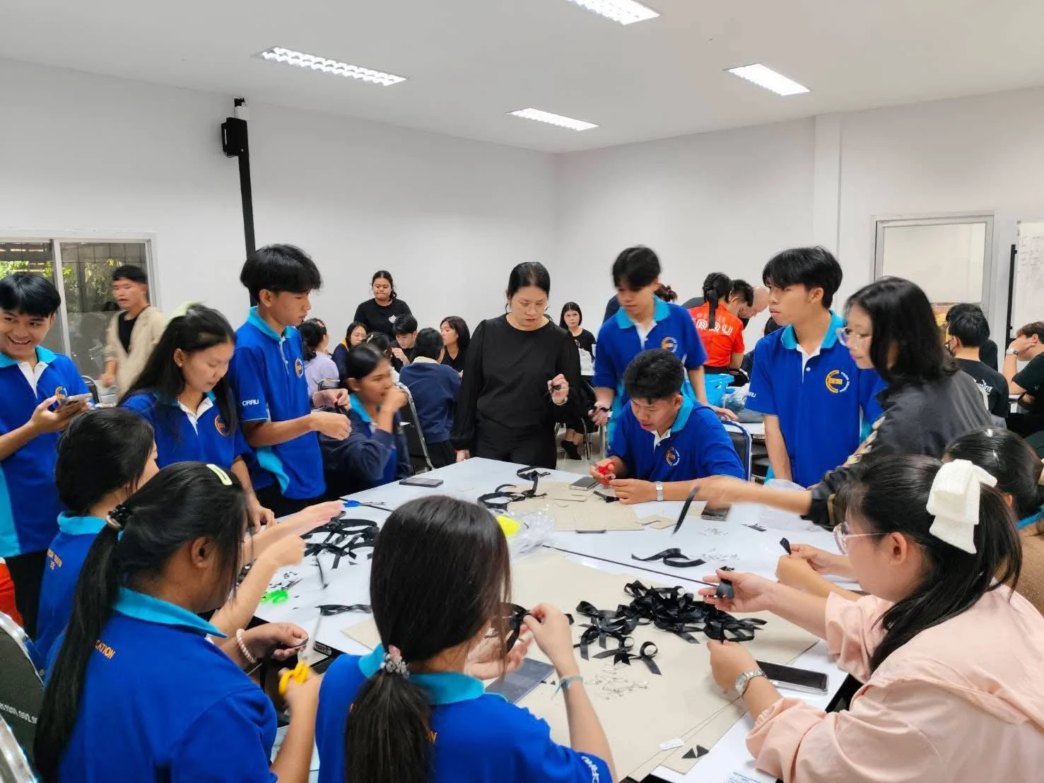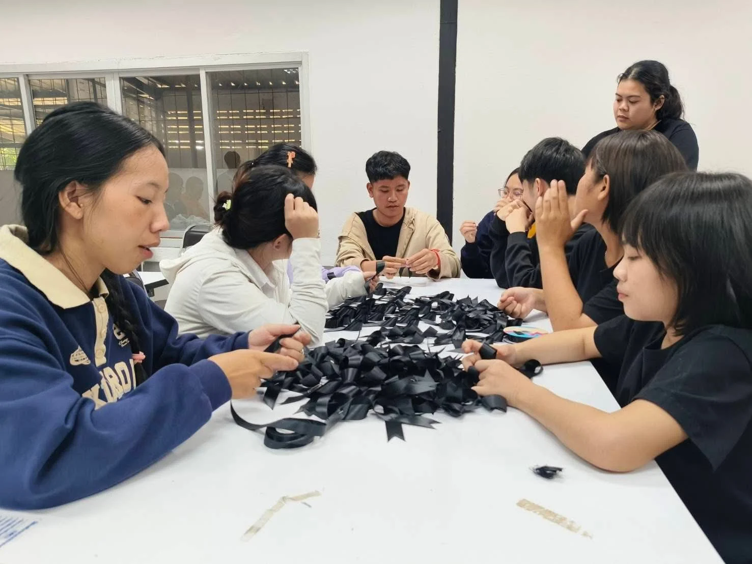 วันที่ 30 ตุลาคม 2568 ผู้ช่วยศาสตราจารย์ ดร.สุทัศน์ คล้ายสุวรรณ์ รองอธิการบดีมหาวิทยาลัยราชภัฏเชียงราย พร้อมด้วย ผู้ช่วยศาสตราจารย์ ดร.สุภาพร เตวิยะ ผู้อำนวยการสำนักศิลปะและวัฒนธรรม ดร.ธีระวัฒน์ วังมณี ผู้อำนวยการกองพัฒนานักศึกษา และนายบุญทัน สมณะ หัวหน้าฝ่ายกิจกรรมนักศึกษา ได้ร่วมให้กำลังใจนักศึกษามหาวิทยาลัยราชภัฏเชียงราย ที่ร่วมกิจกรรมจิตอาสาประดิษฐ์ริบบิ้นไว้อาลัย เพื่อถวายความอาลัยแด่ สมเด็จพระนางเจ้าสิริกิติ์ พระบรมราชินีนาถ พระบรมราชชนนีพันปีหลวง