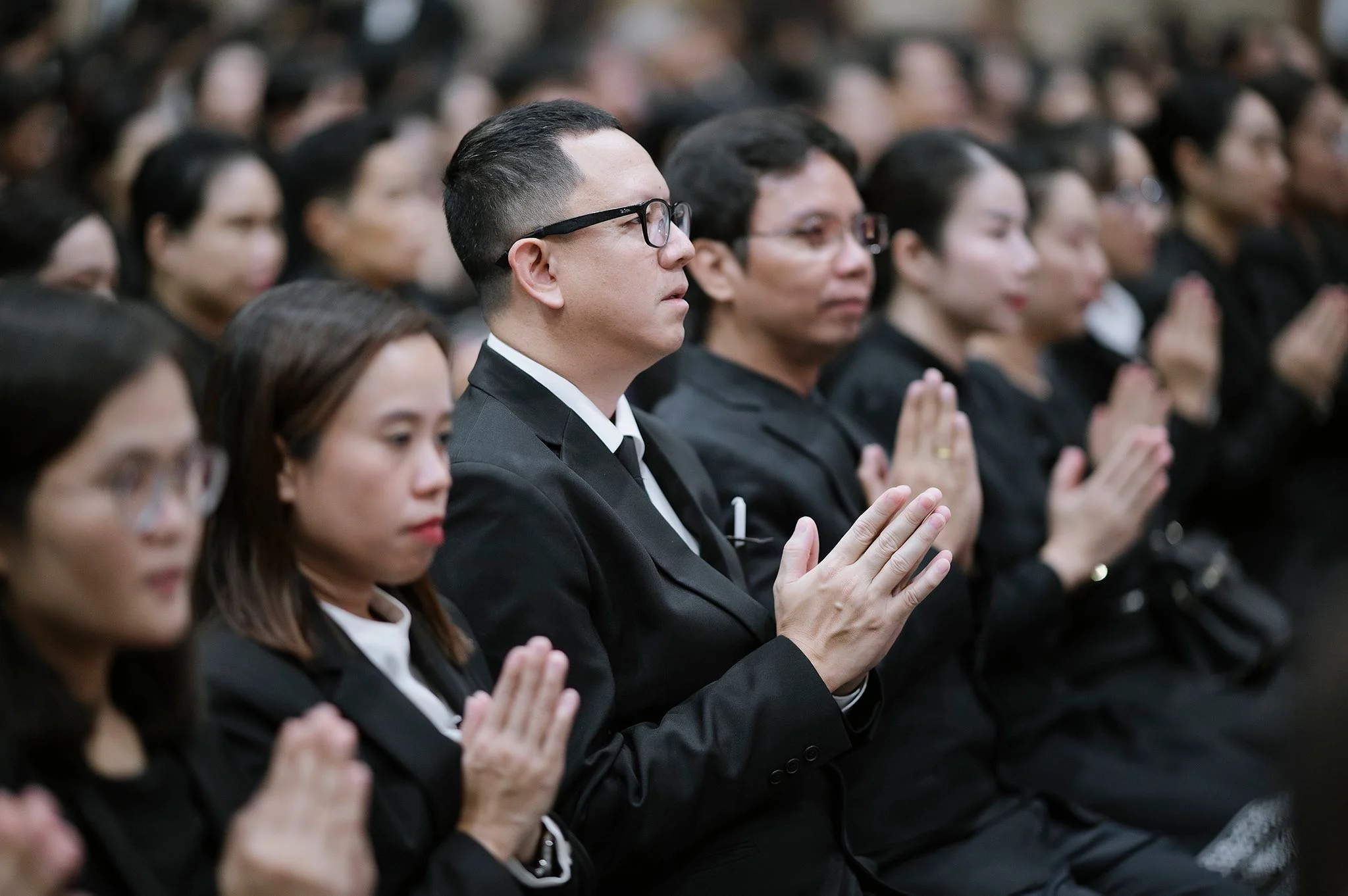ภายในพิธีประกอบด้วย พิธีสวดพระพุทธมนต์เพื่อบำเพ็ญกุศลอุทิศถวาย, กิจกรรมเจริญจิตภาวนา และ พิธีจุดเทียนน้อมรำลึกในพระมหากรุณาธิคุณ โดยมีคณะผู้บริหาร คณาจารย์ บุคลากร นักศึกษา และผู้นำท้องถิ่น เข้าร่วมพิธีด้วยความสำนึกในพระมหากรุณาธิคุณอันล้นพ้น