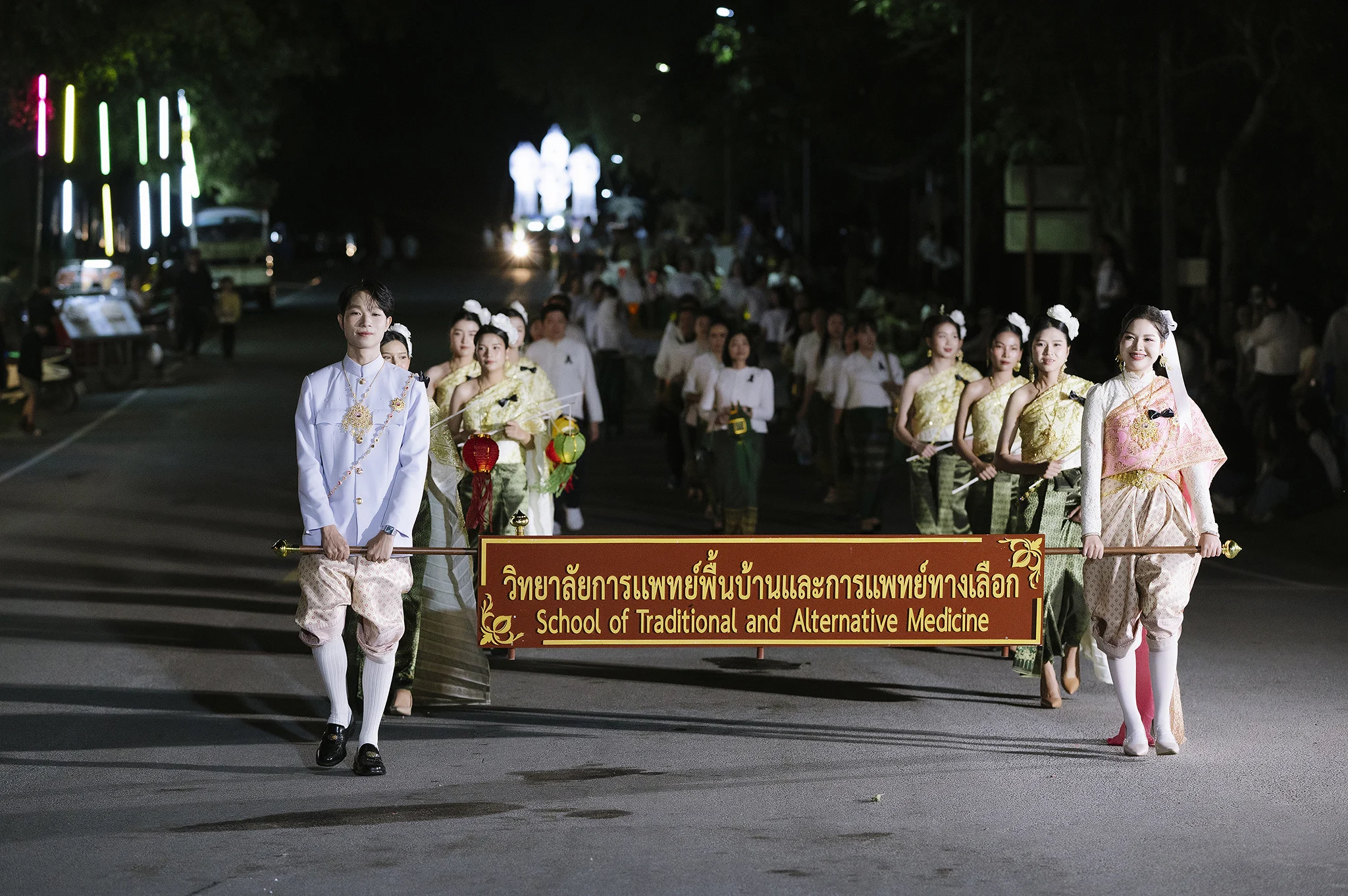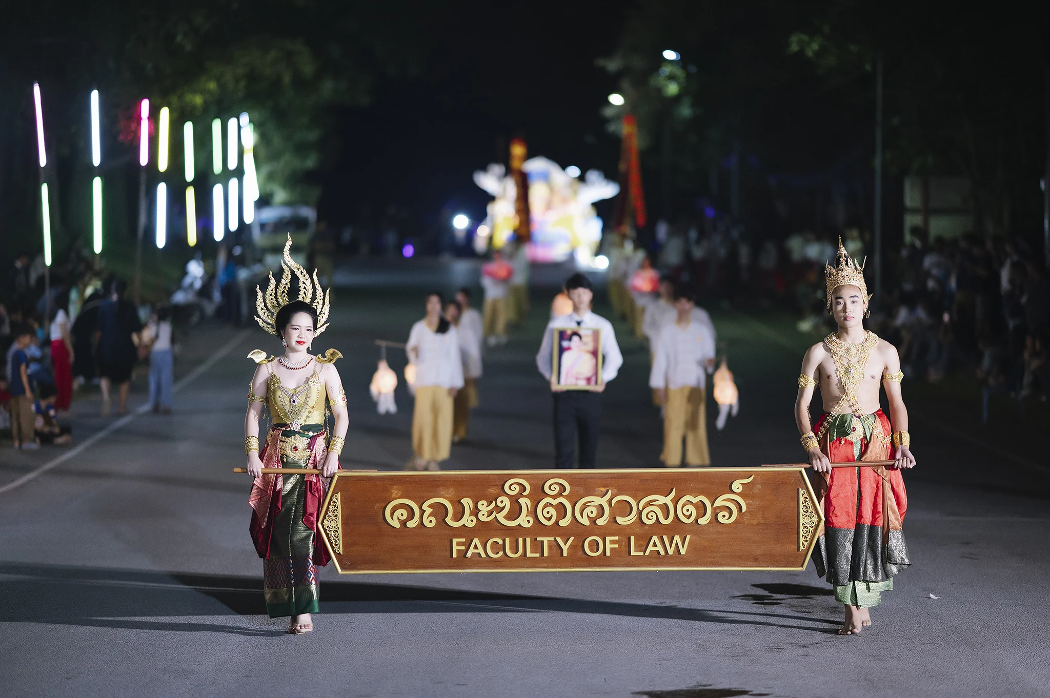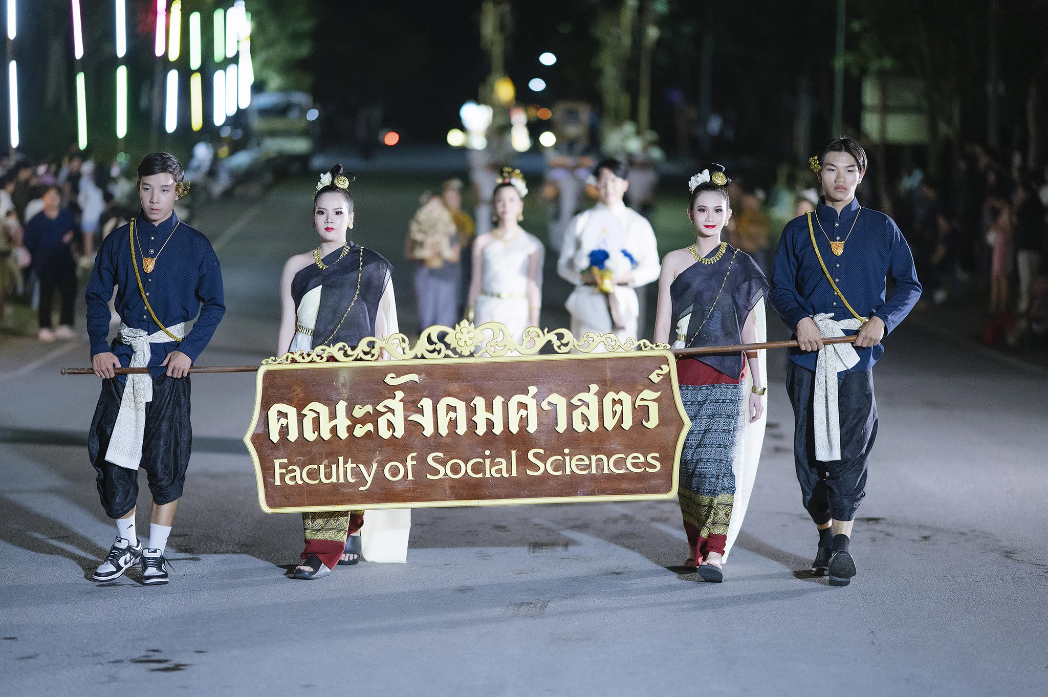 บรรยากาศภายในงานเต็มไปด้วยความวิจิตรตระการตาของ ริ้วขบวนกระทงใหญ่จากทุกคณะ ที่ร่วมกันสร้างสรรค์ผลงานอย่างประณีต ถ่ายทอดเอกลักษณ์ทางศิลปวัฒนธรรมล้านนา ผ่านรูปแบบกระทงที่งดงามและสื่อความหมายถึงความศรัทธา ความสามัคคี และการขอขมาต่อพระแม่คงคา ขบวนแห่ได้เคลื่อนผ่านเส้นทางภายในมหาวิทยาลัย มุ่งสู่เวทีจัดกิจกรรมบริเวณ หน้าหอปรัชญารัชกาลที่ 9