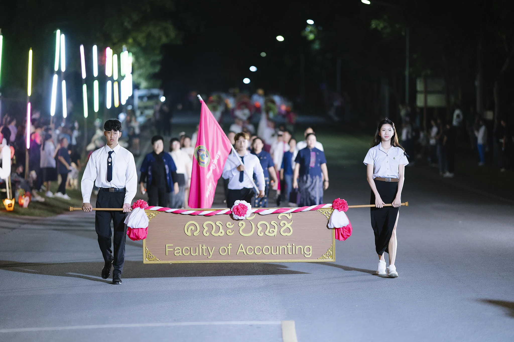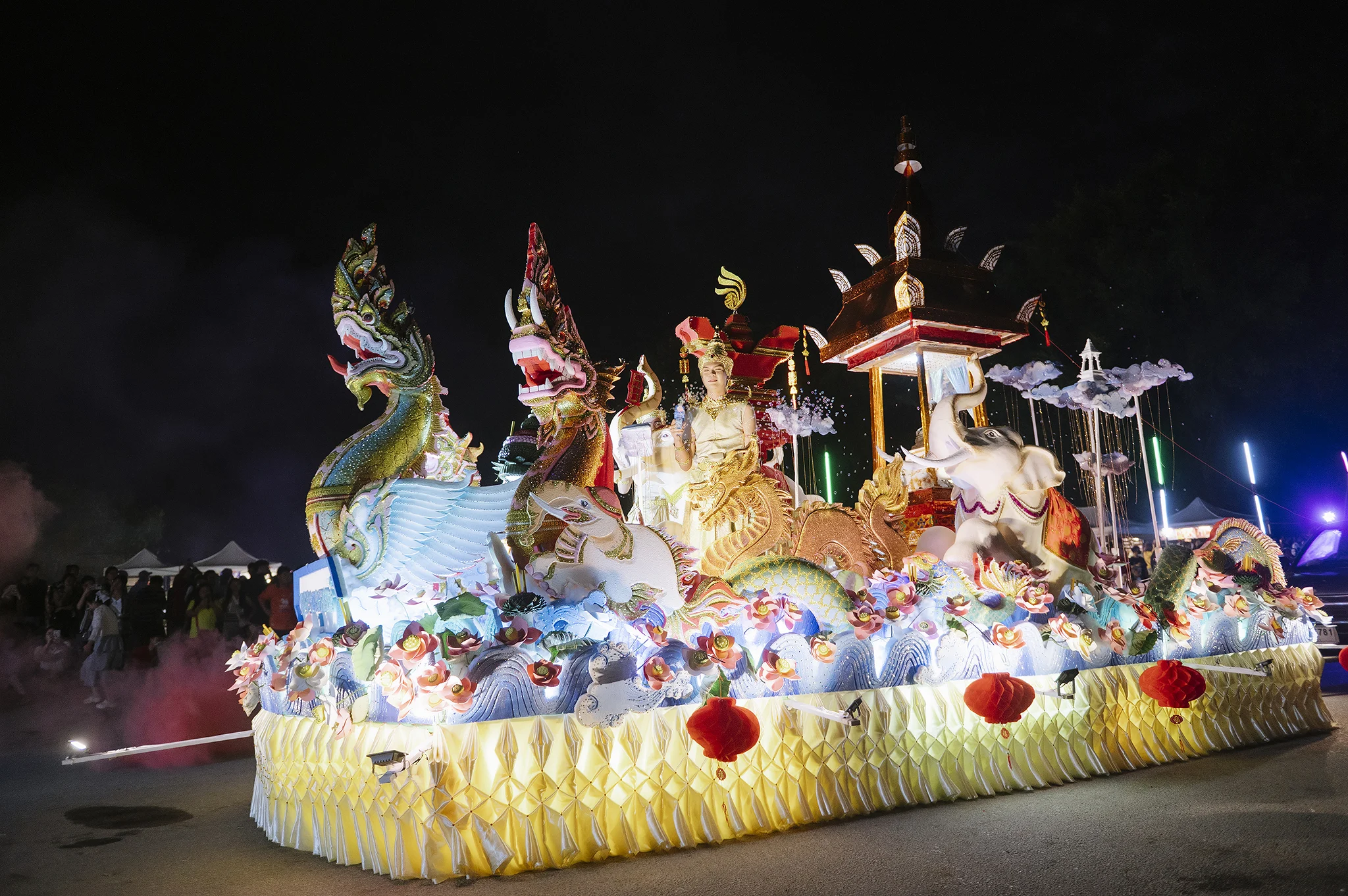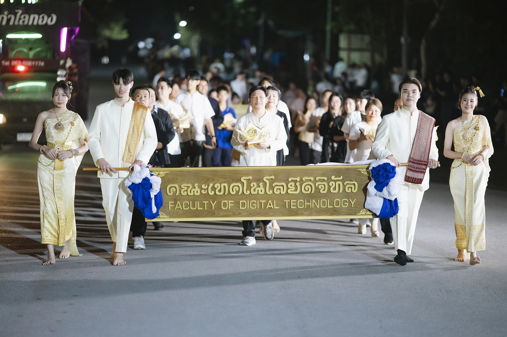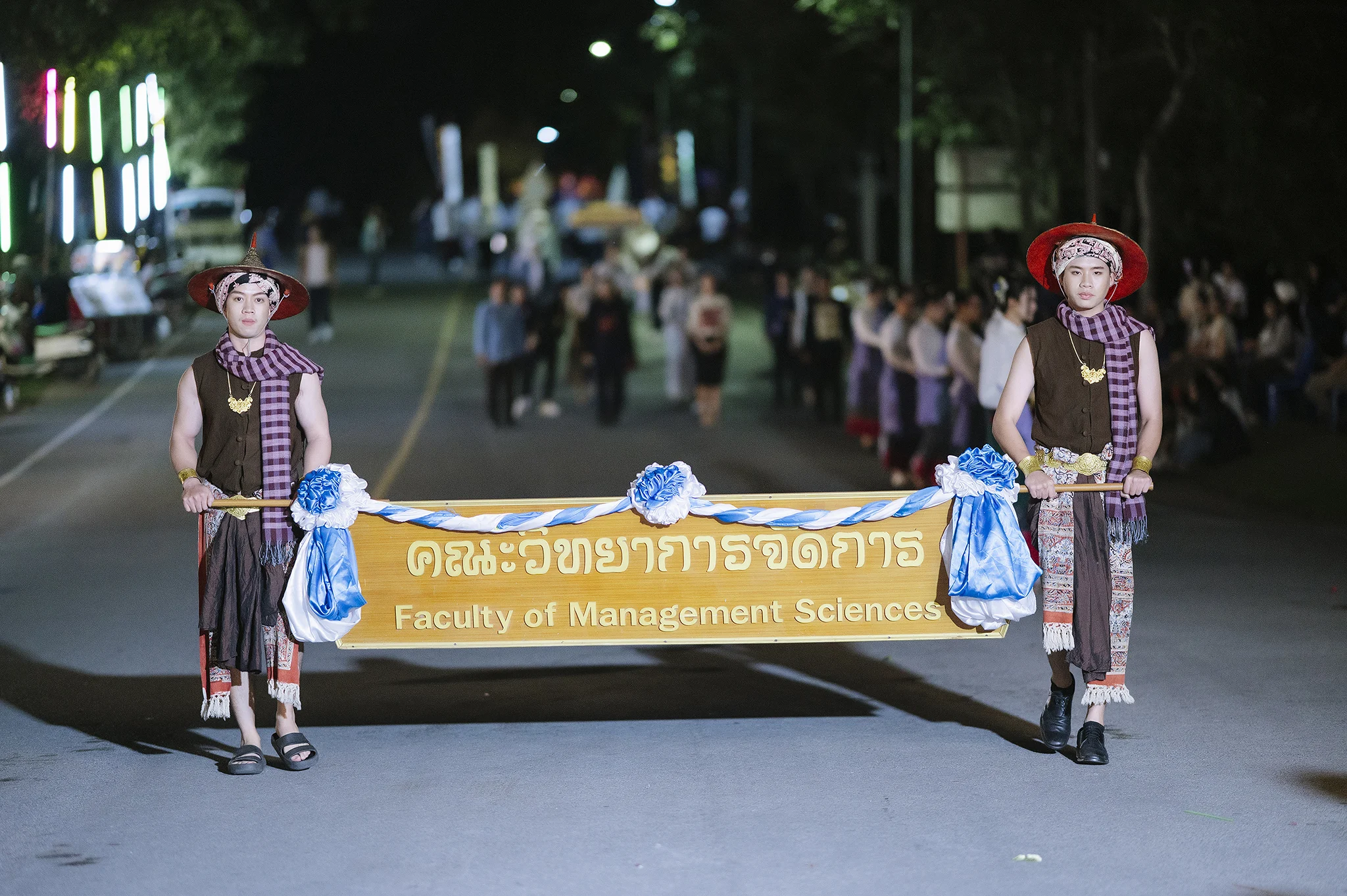 บรรยากาศภายในงานเต็มไปด้วยความวิจิตรตระการตาของ ริ้วขบวนกระทงใหญ่จากทุกคณะ ที่ร่วมกันสร้างสรรค์ผลงานอย่างประณีต ถ่ายทอดเอกลักษณ์ทางศิลปวัฒนธรรมล้านนา ผ่านรูปแบบกระทงที่งดงามและสื่อความหมายถึงความศรัทธา ความสามัคคี และการขอขมาต่อพระแม่คงคา ขบวนแห่ได้เคลื่อนผ่านเส้นทางภายในมหาวิทยาลัย มุ่งสู่เวทีจัดกิจกรรมบริเวณ หน้าหอปรัชญารัชกาลที่ 9
