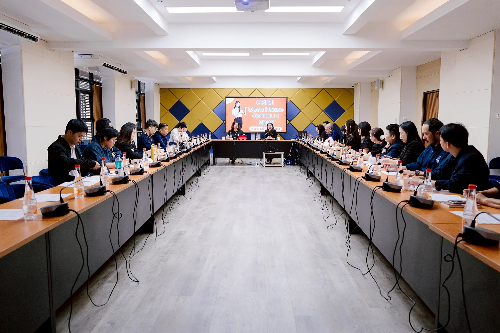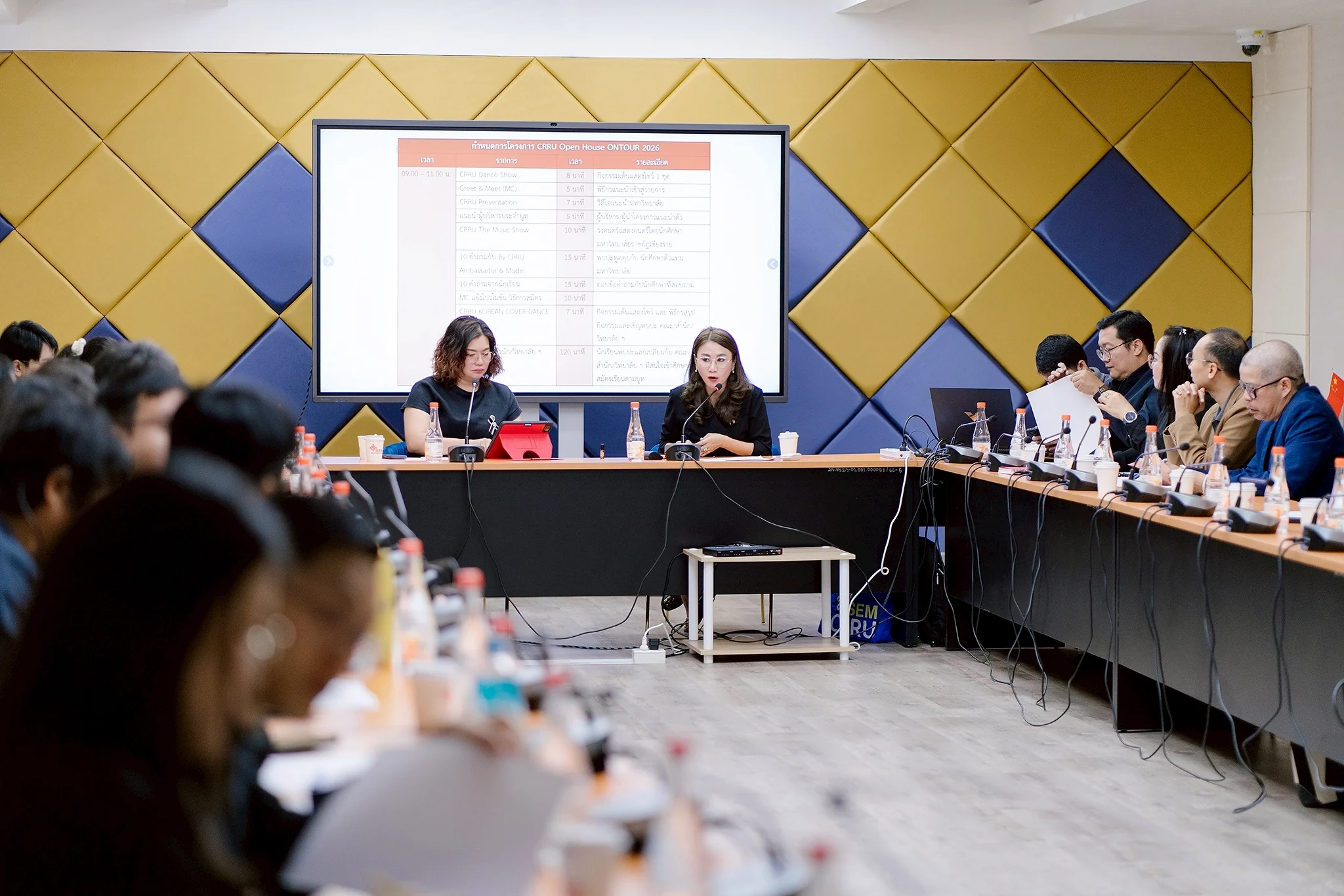 โดยมี ผู้ช่วยศาสตราจารย์ ดร.สหัทยา สิทธิวิเศษ รองอธิการบดี เป็นประธานการประชุม ร่วมด้วย ผู้ช่วยศาสตราจารย์ ดร.กษิรา ภิวงศ์กูร ผู้อำนวยการกองการสื่อสารองค์กรและประชาสัมพันธ์ ตลอดจนผู้บริหารและบุคลากรจากหน่วยงานภายในมหาวิทยาลัย เข้าร่วมประชุมเพื่อระดมความคิดเห็นและวางแผนการดำเนินงานอย่างรอบด้าน การประชุมในครั้งนี้มีเป้าหมายเพื่อเตรียมความพร้อมสำหรับกิจกรรม “CRRU Road Show” ที่จะจัดขึ้นตามโรงเรียนต่าง ๆ ในจังหวัดเชียงราย ช่วงเดือน ธันวาคม 2568 เพื่อแนะแนวการศึกษาต่อและแนะนำหลักสูตรที่เปิดรับสมัครพร้อมกิจกรรมสร้างสรรค์เพื่อให้นักเรียนได้รู้จักมหาวิทยาลัยมากยิ่งขึ้น