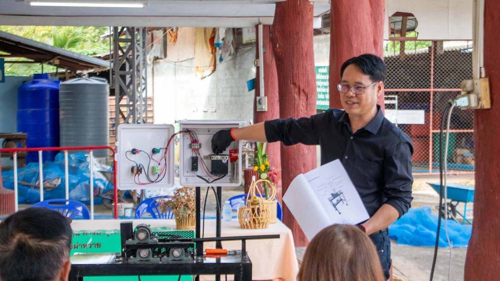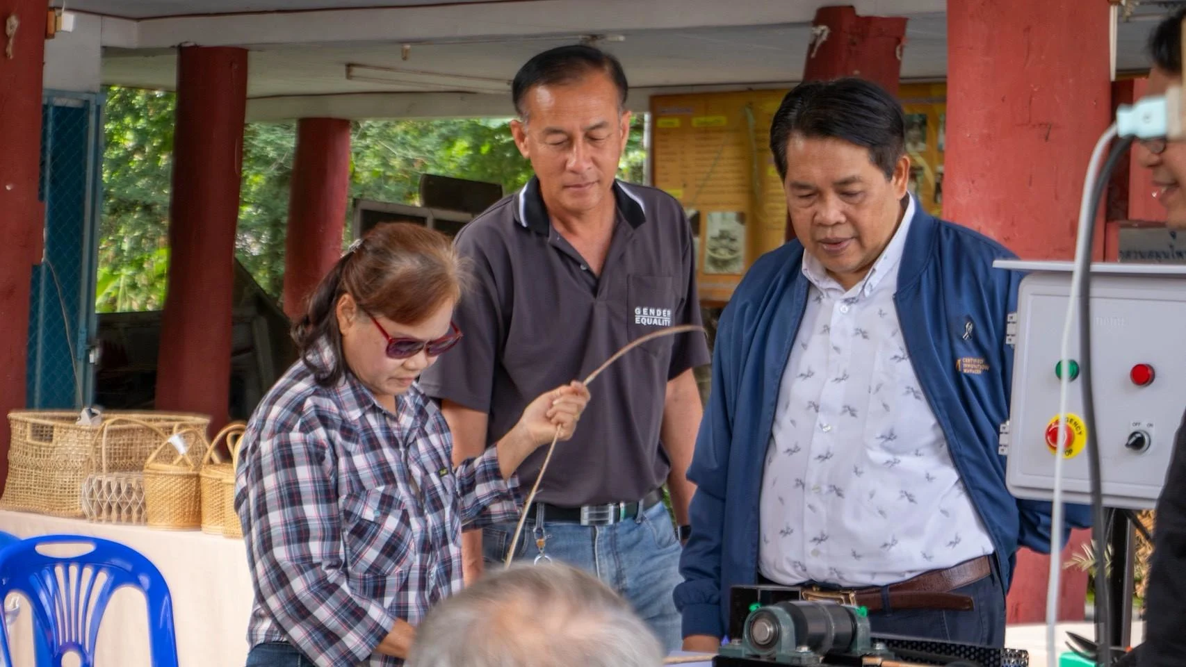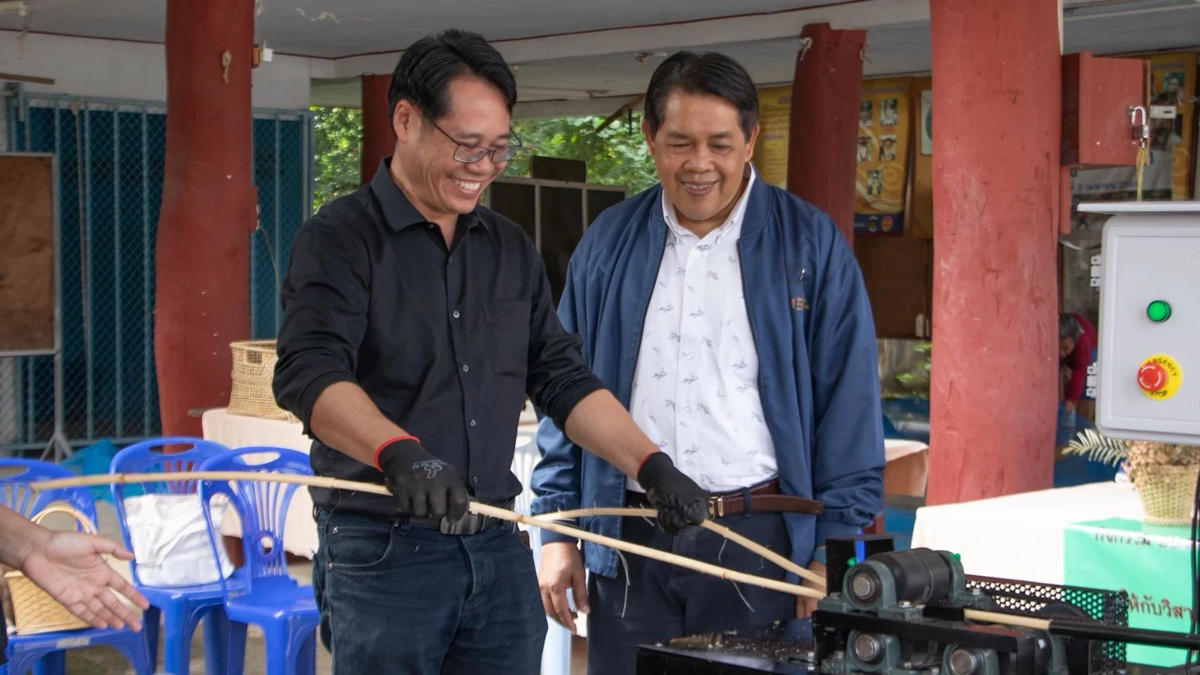 ต่อมาในปี 2567 ชุมชนได้เสนอความต้องการ “เครื่องผ่าหวาย” และการออกแบบผลิตภัณฑ์จากหวายรูปแบบใหม่ที่ทันสมัยและทนทาน เพื่อสร้างความแตกต่างในตลาด มรภ.เชียงรายจึงส่งทีมวิจัย ได้แก่ ผศ.วิบูลย์พร วุฒิคุณ และ ผศ.ดร.ชัชชัย วรพัฒน์ จากคณะเทคโนโลยีอุตสาหกรรม ร่วมพัฒนานวัตกรรมดังกล่าวจนสำเร็จ ทั้ง เครื่องผ่าหวายที่มีประสิทธิภาพสูง และ ต้นแบบผลิตภัณฑ์หวายสมัยใหม่ ที่มีความโดดเด่นทั้งด้านดีไซน์และความคงทน ป้องกันปัญหามอดกัดกิน