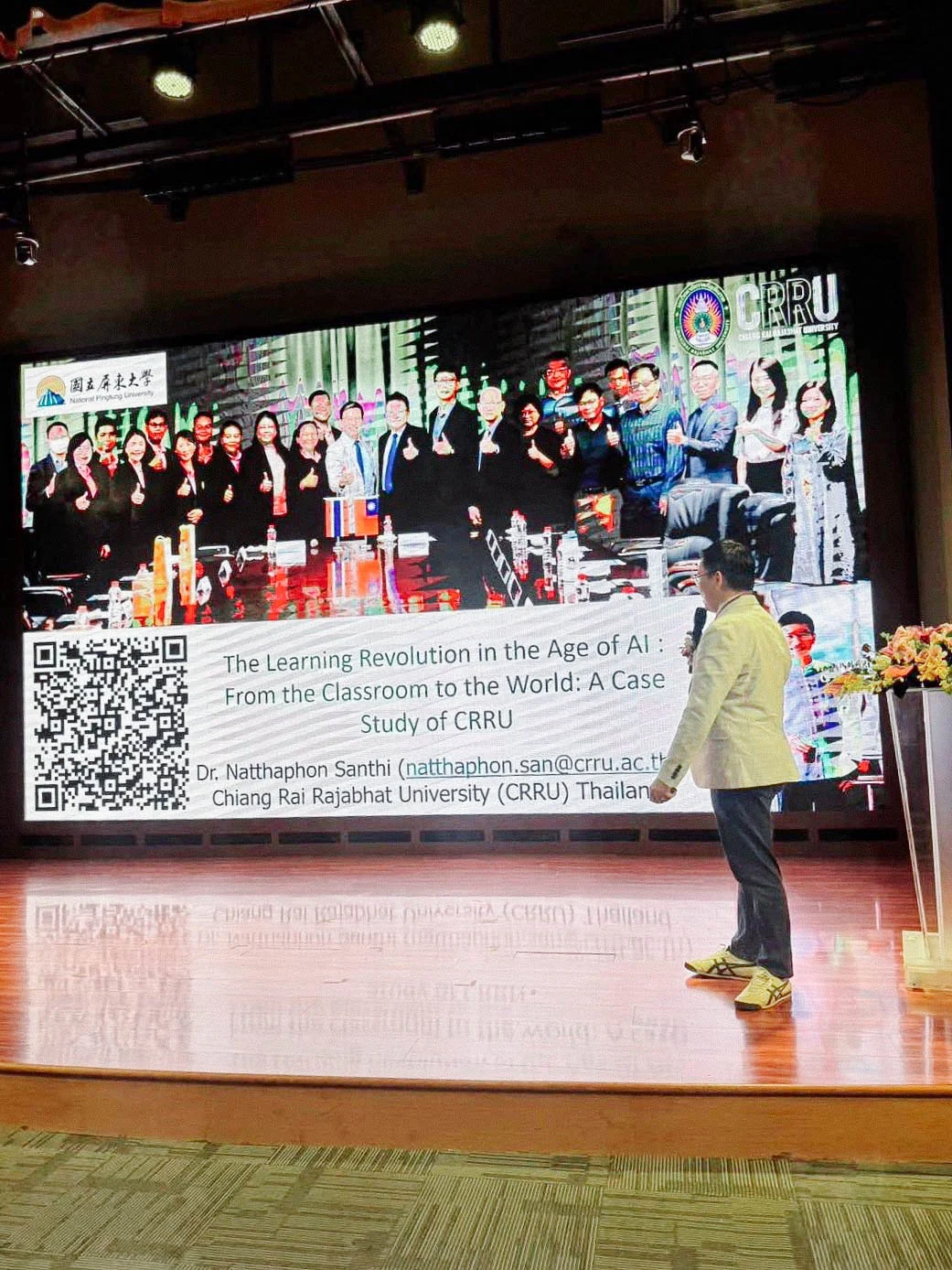 วันที่ 22 พฤศจิกายน 2568 มหาวิทยาลัยราชภัฏเชียงราย เข้าร่วมพิธี 12th Anniversary Celebration of National Pingtung University (NPTU) ณ ประเทศไต้หวัน โดยรองศาสตราจารย์ ดร.ไพโรจน์ ด้วงนคร อธิการบดี มอบให้ ดร.ณัฏฐพล สันธิ ผู้ช่วยอธิการบดี เข้าร่วมงาน ร่วมด้วย ผู้ช่วยศาสตราจารย์ ดร.ภูมิพงษ์ ดวงตั้ง คณบดีคณะเทคโนโลยีดิจิทัล เพื่อหารือแนวทางพัฒนาความร่วมมือด้าน AI, Digital Innovation และการพัฒนาบุคลากรเชิงนวัตกรรม