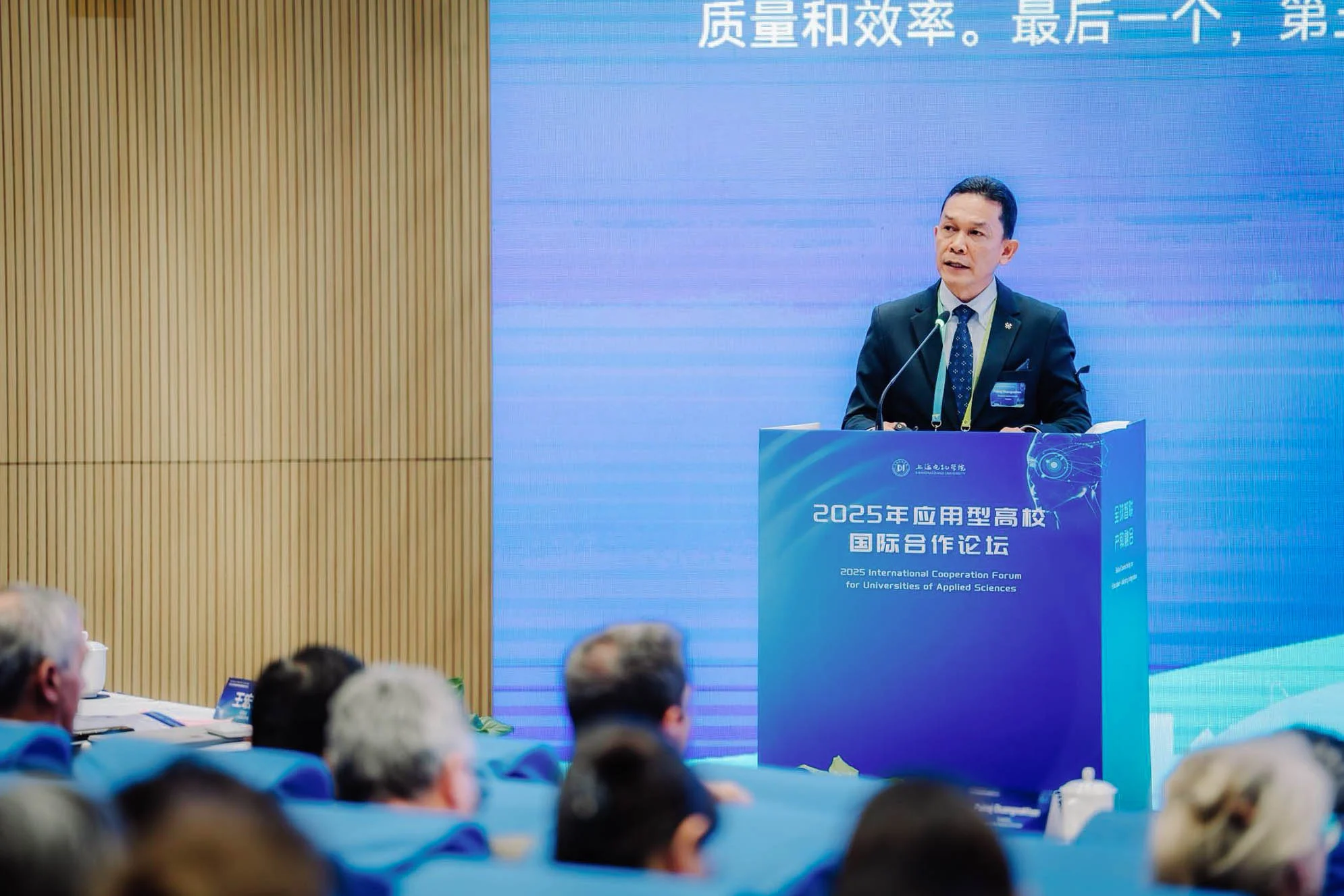 มหาวิทยาลัยราชภัฏเชียงราย (มรภ.เชียงราย) เดินหน้าสู่เวทีสากล ร่วมงานประชุมวิชาการระดับนานาชาติ 2025 International Cooperation Forum for Universities of Applied Sciences ภายใต้หัวข้อ “AI-Empowerment for Talent Cultivation · Global Connectivity for Industry-Education Integration” จัดโดย Shanghai DianJi University ณ นครเซี่ยงไฮ้ สาธารณรัฐประชาชนจีน เมื่อวันที่ 23 พฤศจิกายน 2568