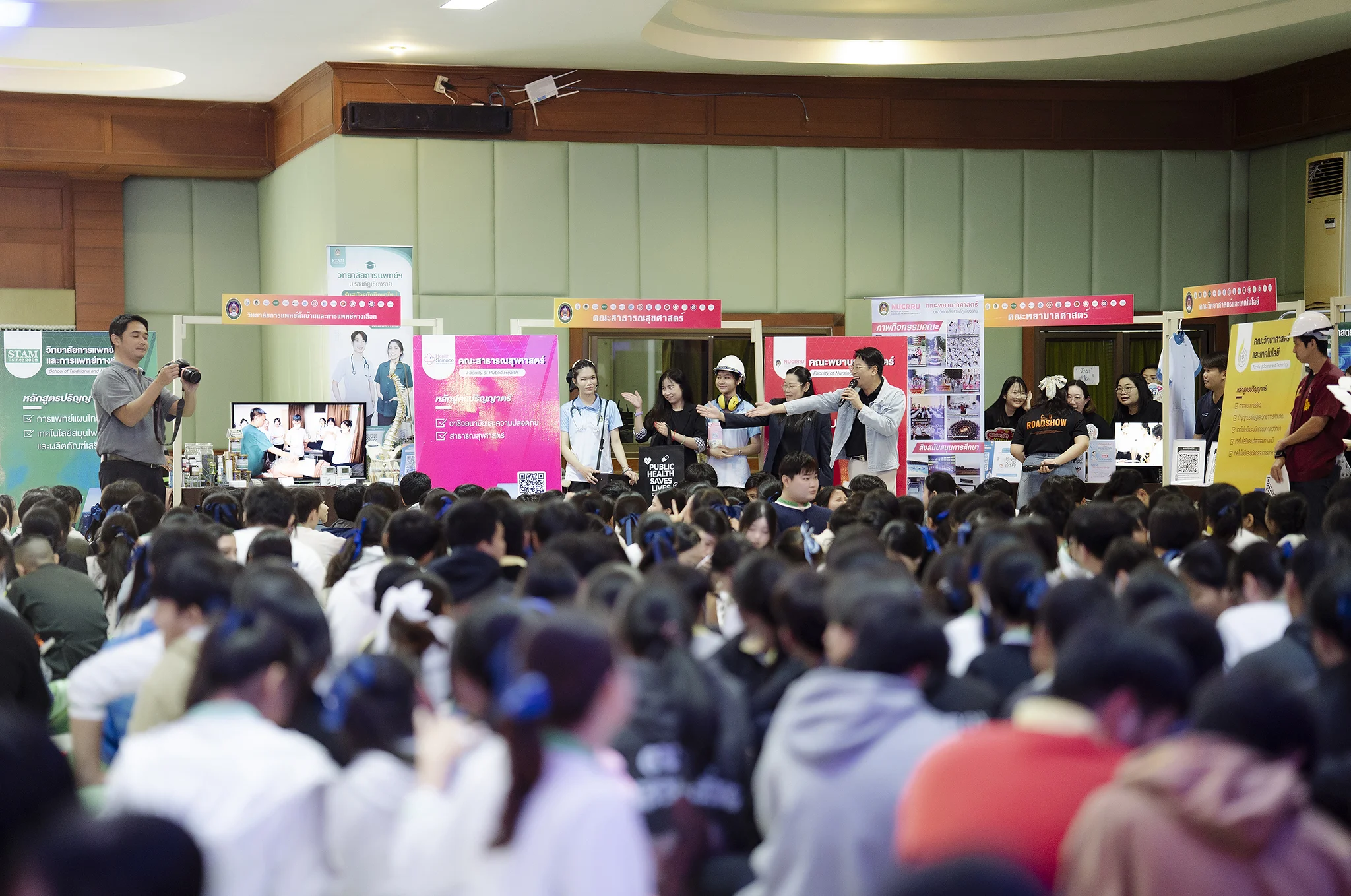 บรรยากาศภายในงานเต็มไปด้วยความคึกคัก นักเรียนระดับมัธยมศึกษาตอนปลายได้เปิดโลกการเรียนรู้ผ่านนิทรรศการแนะนำหลักสูตรจากหลากหลายคณะ พร้อมรับคำปรึกษาแนะแนวเส้นทางการศึกษาต่อที่สอดคล้องกับความถนัดและความสนใจ เพื่อช่วยให้วางแผนอนาคตทางการศึกษาได้อย่างมั่นใจ