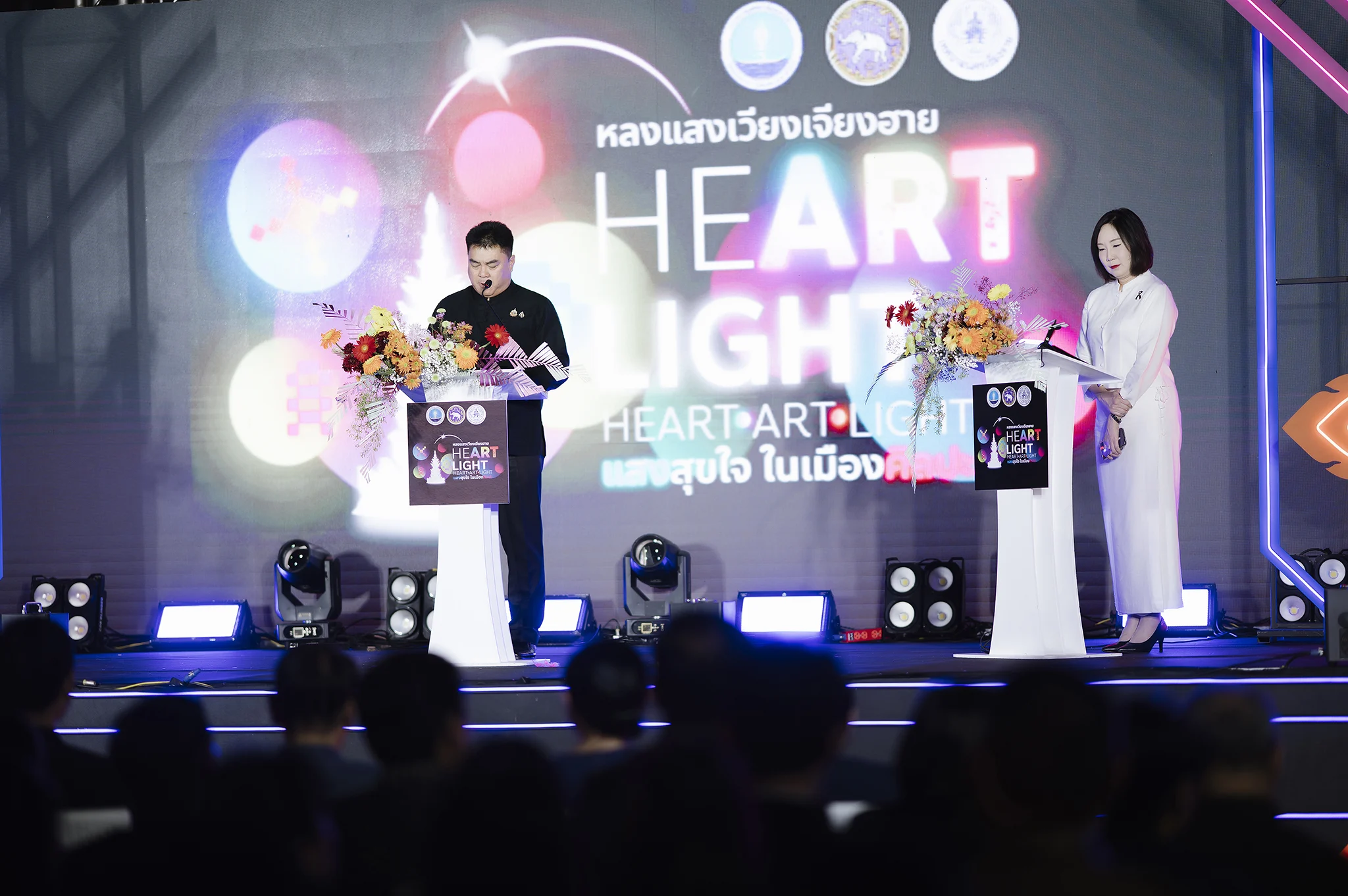 วันที่ 24 ธันวาคม 2568 มหาวิทยาลัยราชภัฏเชียงราย โดย ผู้ช่วยศาสตราจารย์ ยิ่งศักดิ์ เพชรนิล รองอธิการบดี ร่วมพิธีเปิดงานแสดงศิลปะ “หลงแสงเวียง เจียงฮาย Heart Art Light : แสงสุขใจในเมืองศิลปะ” ภายใต้โครงการฟื้นฟูพื้นที่ที่ได้รับผลกระทบจากอุทกภัยของจังหวัดเชียงราย เพื่อสร้างพลังใจให้กับประชาชน พร้อมประชาสัมพันธ์และกระตุ้นการท่องเที่ยวของจังหวัดเชียงรายให้กลับมาคึกคักอีกครั้ง