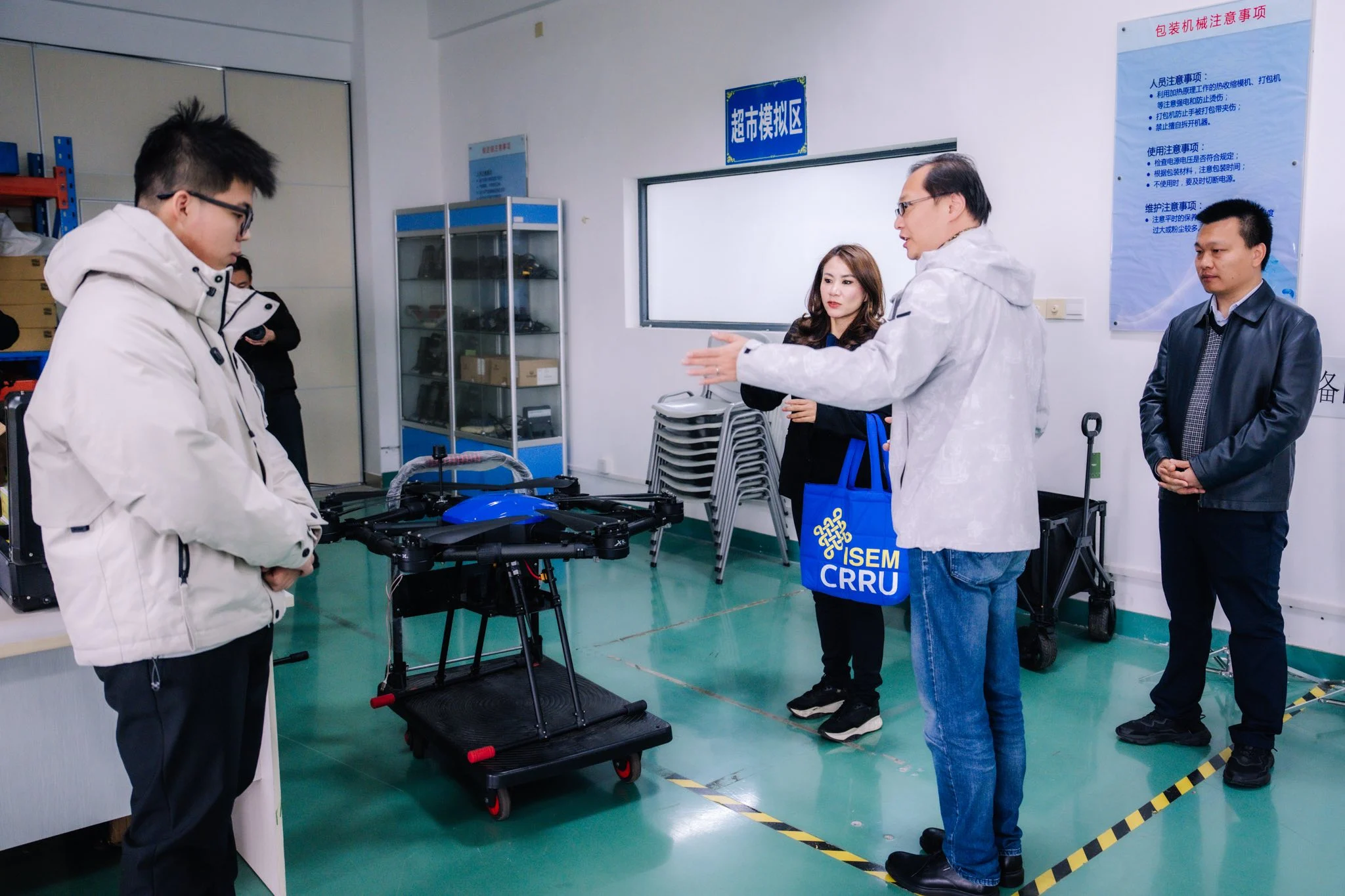 ภายในกิจกรรมยังมีการสาธิต เทคโนโลยีโดรนเพื่อการเรียนการสอน รวมถึงการเขียนโปรแกรมและการควบคุมการบินโดรน ซึ่งสถาบันดังกล่าวเป็นหนึ่งใน ศูนย์ฝึกอบรมและศูนย์สอบมาตรฐานทักษะการบินโดรนของนครเซี่ยงไฮ้